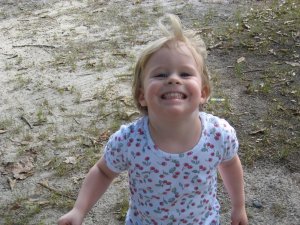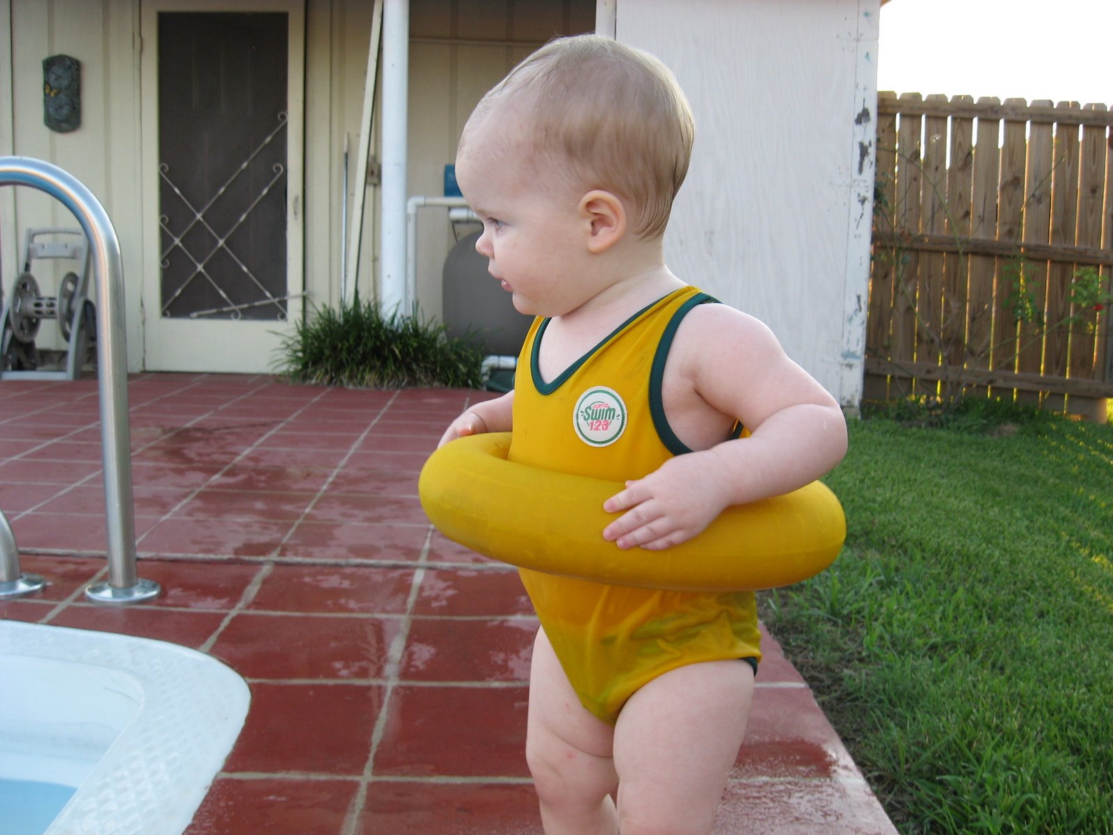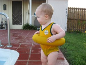 Here’s Laci in her cutsie (did I just say “cutsie”? Whoa. That’s a little too…sweet for me. I mean darling)little swim outfit that Mrs. Joyce had at her house. I just love this photo!