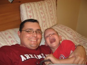 I tried to get a photo of Mitch’s missing tooth, and then he lost another one, so I’ll have to get a better photo! You can kinda see the hole in the lower right side in the middle…does that make sense??