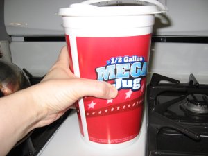 On our date a few weeks ago, Terry stopped by KFC to get us drink on the way home. He told the drive thru lady, “Give me a Mega Dr. Pepper” Well, we had no idea how big “Mega” was…now we know! (half a gallon?? No, we didn’t finish it…not even close!)