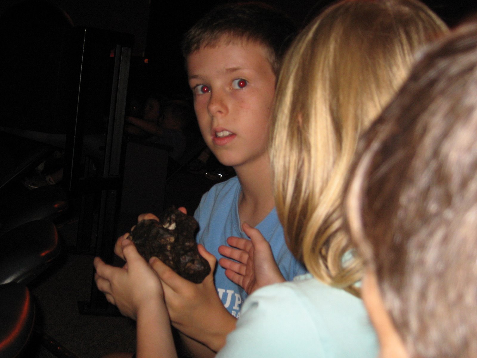 Here we are in the planetarium waiting on the show, which was so interesting, by the way. The man let everyone hold a meteorite.
