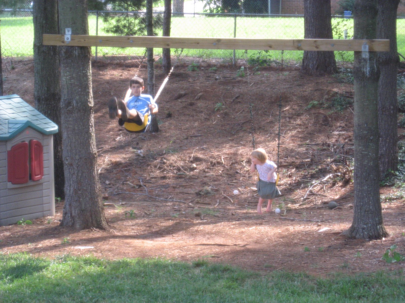 July 27 was Sunday. We were able to attend Gospel Light Baptist with Melanie. (Walter had to stay with Stephen) We were privileged to hear Melanie’s Pastor, Bobby Roberson preach the morning service. He preached a wonderful message! I really admire that man! He’s so humble, so genuine! I will be posting more about that soon. Sunday afternoon we went home and the kids played in Melanie’s gorgeous backyard! I used to be so jealous of North Carolinians when I lived in Texas. But now I live in Arkansas!