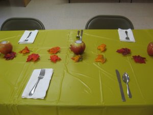 WOW! I love your decorations. Did you just scoop out a real apple and place a candle in it?? How creative!!!! I know you did a great job and everyone was blessed.