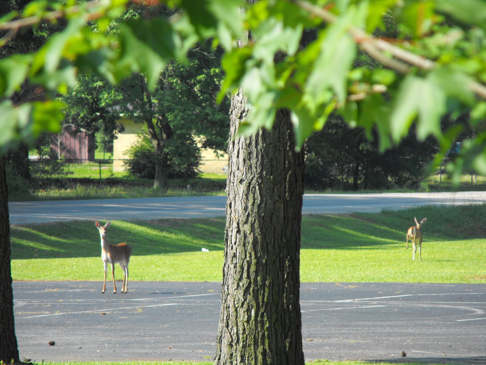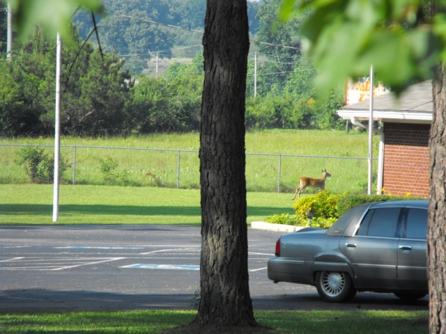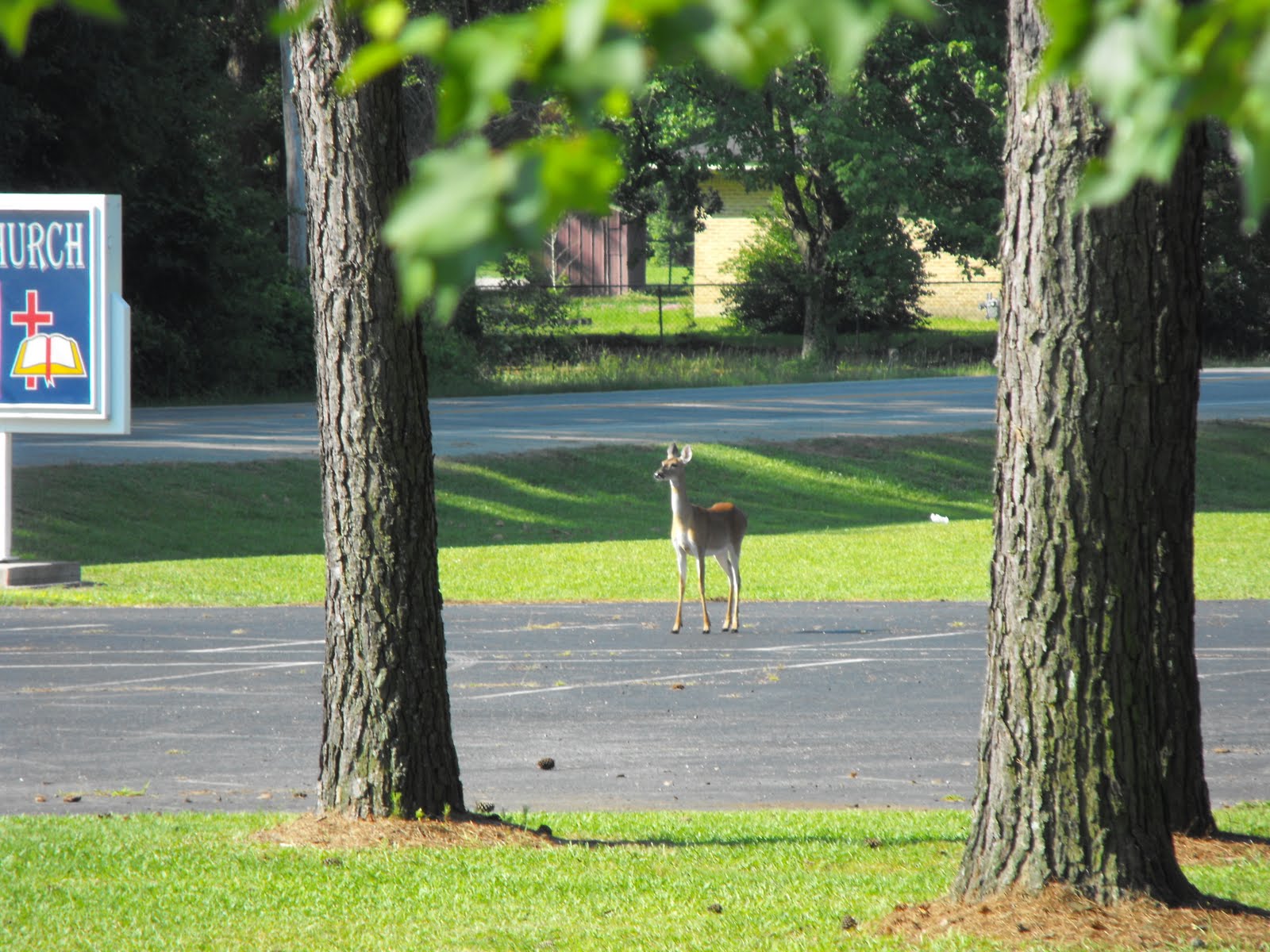 We had some very interesting visitors this past Sunday! As we were getting ready for church this past Sunday morning, my husband glanced out the window and got to enjoy a rare sight – two deer in our church parking lot! He quickly grabbed my camera and snapped some photos. It made for a pleasant start to a wonderful day in the Lord’s house.