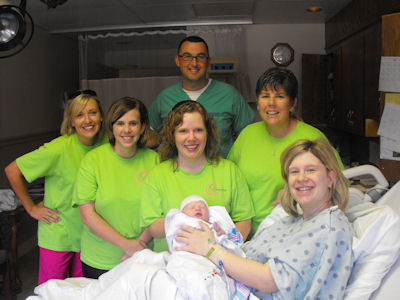 Please ignore how terrible I look. I went into labor in the middle of the night, so the hair looks bad and the lack of make up looks worse, but I had to post a picture of the wonderful doctor and staff that took care of me and Matthew. They are excellent! I was so glad that the office staff came by the hospital to visit me. Matthew was just an hour old here. If you need to have a baby, I highly recommend having it in Arkadelphia, Arkansas, if at all possible. 😉