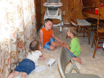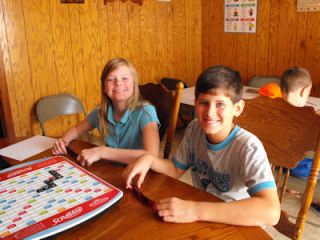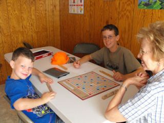 The other kids enjoyed a game of Scrabble! Mitch is playing with Nana and his cousin, David Allen.