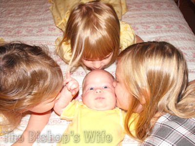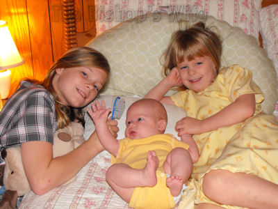 This past Sunday, I came in to get ready for church and found my girls giving Matthew the royal treatment!
