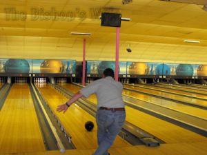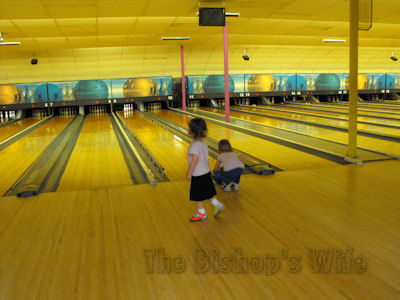 Yes, that ball is moving, though you can barely tell. She could have turned three somersaults while waiting on it to reach the pins. I kid you not! Of course, we didn’t let her…