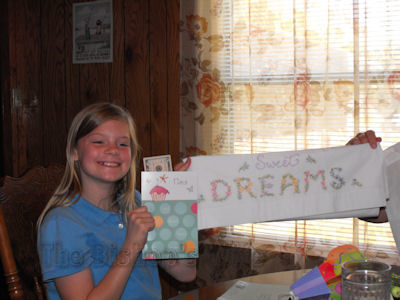 Aunt Melanie made this lovely pillow case! It says “Sweet Dreams” in a very feminine stitch.