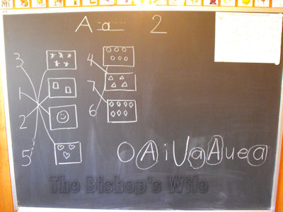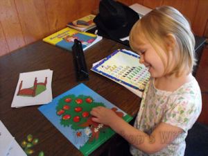 Leslie had a good week also. She has learned all of her vowel sounds, how to write them and how to write 1 and 2. She is loving the games and songs that we do. I think her favorite time is art time though! She told me that she would like to be an artist someday. Our home school support group is starting an art class (taught by someone who actually knows art!) at the end of the month! I know they all will really enjoy that, especially Leslie! :]