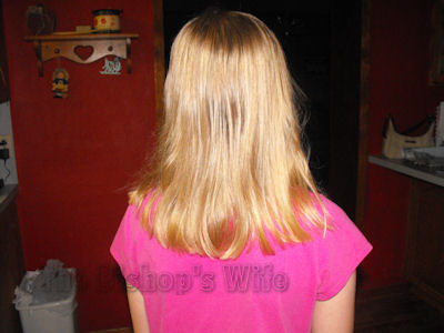 This week, I trimmed about four inches off of Lauren’s hair. It was getting kinda…stringy.