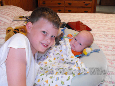 Our oldest son, Mitchell, has been so thrilled to have another boy in the family! He was praying for little Matthew long before I was even expecting! I wanted to share a few photos of Mitchell and Matthew. I especially like the two photos at the bottom. I took those just last night when I saw Mitch reading his Ranger Rick magazine to Matthew! They are already spending some quality time together!