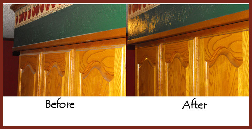 I noticed a while back that my kitchen cabinets were looking kinda…dingy. I found some cleaner at the store that said it was good for cabinets. I dug out a good old rag (good and old? Yes, somehow, it fits both of these adjectives!) and got to work! It felt good to attack the dust that had been sitting for there for —- too long!Ā