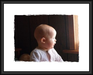 I really loved the photo of my baby that I captured below. The pose looked like one that you might see on canvas! I thought I might be able to make it look like an oil painting using my Paint Shop Pro computer program. I’m not very good at it, but I enjoy playing around with it and learning new things. I really liked how it turned out!