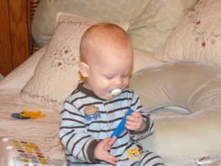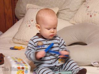 He was playing so sweetly with them, I just had to try to get a short video of the moment. And, no, I didn’t let him have the itty-bitty ones! 🙂