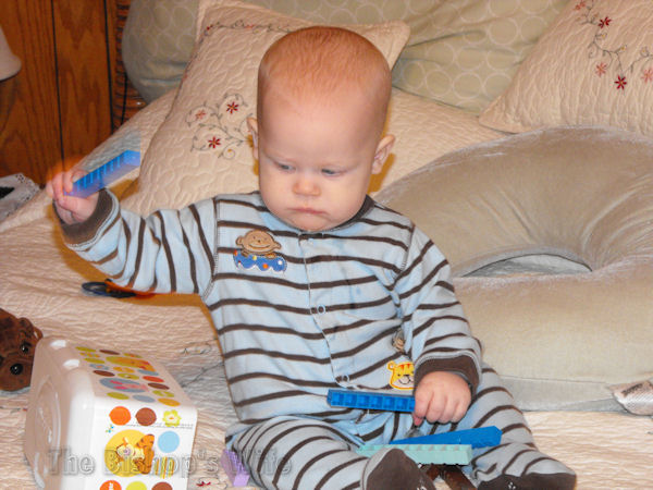 He was playing so sweetly with them, I just had to try to get a short video of the moment. And, no, I didn’t let him have the itty-bitty ones! 🙂