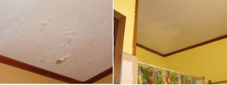 Our ceiling was peeling! So we scraped off the bad part and repainted it using a texture spray paint. We weren’t able to re-do the whole ceiling, but it needs it! Maybe someday…