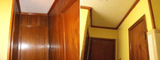 This is as you leave the bathroom to enter the hallway. You can see this part used to be a dark paneling, we just painted over it. It’s much brighter! I love it!