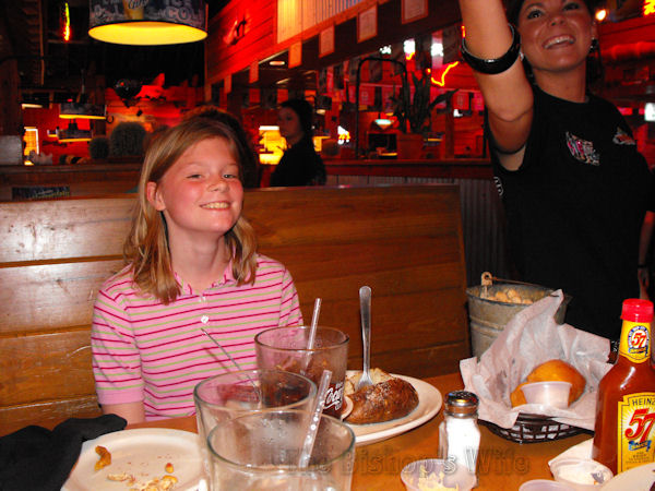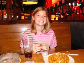 Lauren enjoying the Baby Blossom onion at Texas Roadhouse. Yummola!