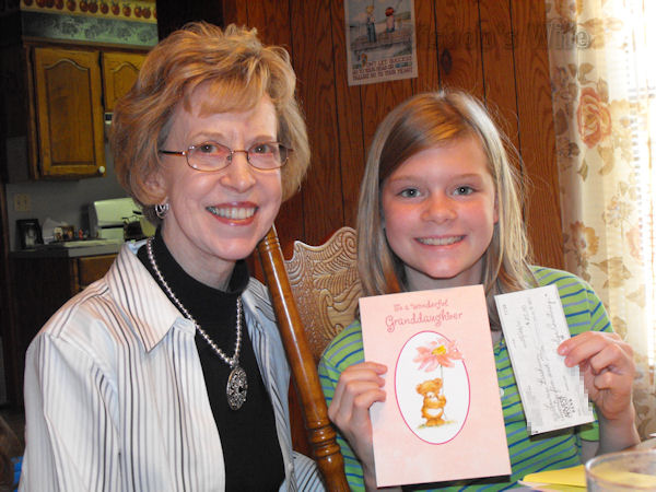 Nana gave her a card and money, as did Great Grandma, Grandma & Granddad in Ohio, and my Aunt Dorothy! 🙂 Yep, she raked it in! lol!