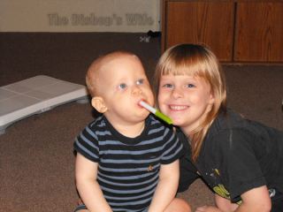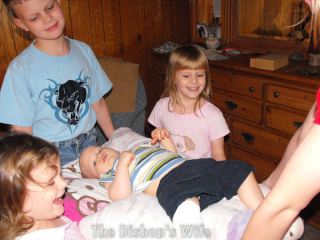 This is my most recent photo. Lauren is so good to her baby brother. Here she is cuddling with him. Oh, and allow me to introduce you to his wife. The lovely doll beside him (really, it’s a doll) is his wife. At least, that’s what the little girls told me. 😉