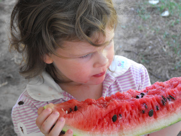 Laci enjoyed some watermelon from a family in our church. We live in the watermelon capital of Arkansas, so we usually get lots of watermelon from folks in our church. This year, we only got two, so I guess the drought effected the crops. It’s been very dry. We are thankful for the ones we got! 🙂