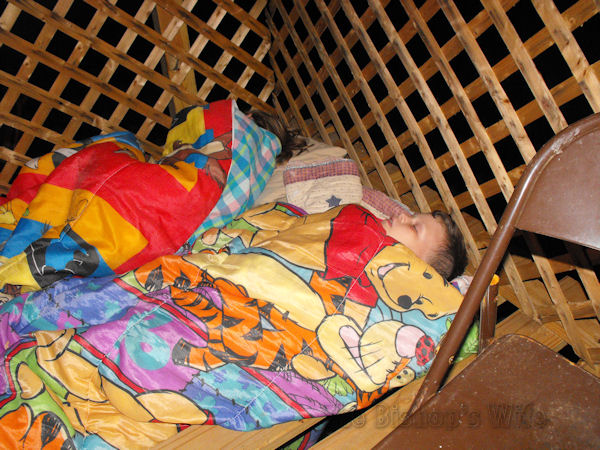 Lauren and Mitchell wanted to experience a night in the tree house! Looks like they slept well. 🙂