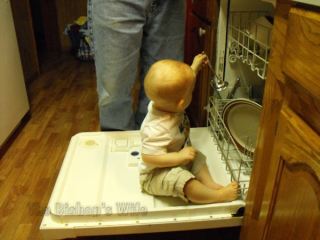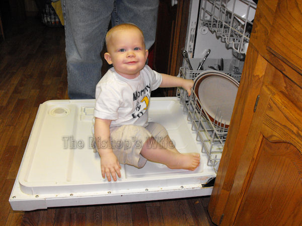 Matthew really got into helping me with the dishes…as into the dishwasher! He won’t be doing this anymore, but I couldn’t resist snapping a photo of it this once. He loves handing us the dishes, and he climbed up on the dishwasher lid lickety-split!