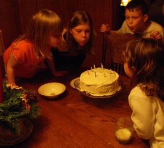 We had our birthday celebration for Jesus last night, ahead of the hub-bub of the actual day. We are also planning on opening gifts after our Sunday morning services, another way of putting Christ first.