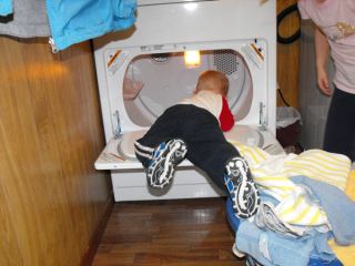A helping hand? Uh-uh. A helping body! Matthew was about to fall in the dryer trying to reach a wash cloth for me!