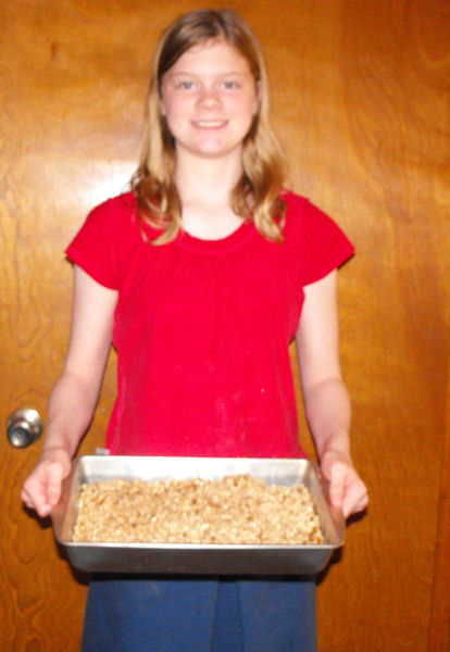Last week was Lauren’s turn to cook. She is really doing a fantastic job! I’m able to leave her alone in the kitchen – for the most part, anyway. 🙂 She chose to make a breakfast item last week, Honey Granola Crunch. Now, I haven’t shared the recipes from all of the kids’ dishes because…well, some of them haven’t really been worth repeating. BUT, that doesn’t take away from the time we spend together cooking, the excitement we share at tasting our creations, or the precious photos I have of them cooking. With that said, this recipe was delicious! It didn’t make enough to last my family very long, though, so we need to triple it next time, but we can do that. 🙂