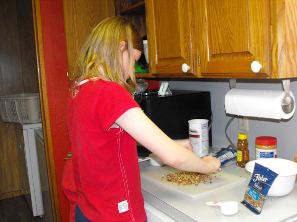 Lauren, chopping pecans.