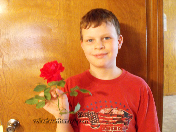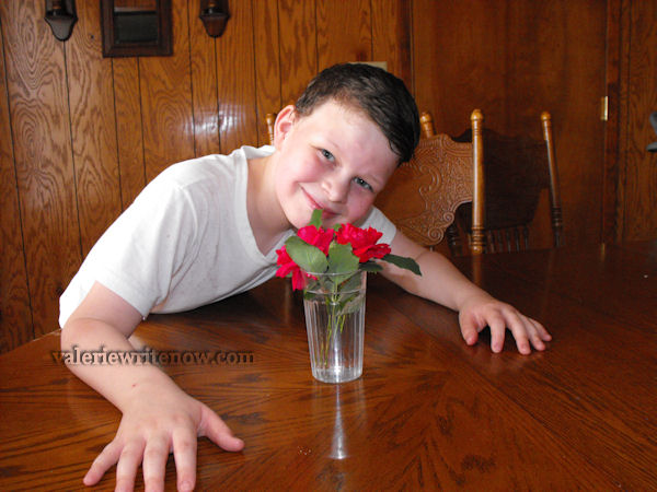 Mitchell’s always good to bring me flowers, just like his dad would do when we were dating. He loved the way the leaves looked on this one!