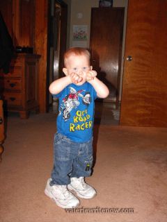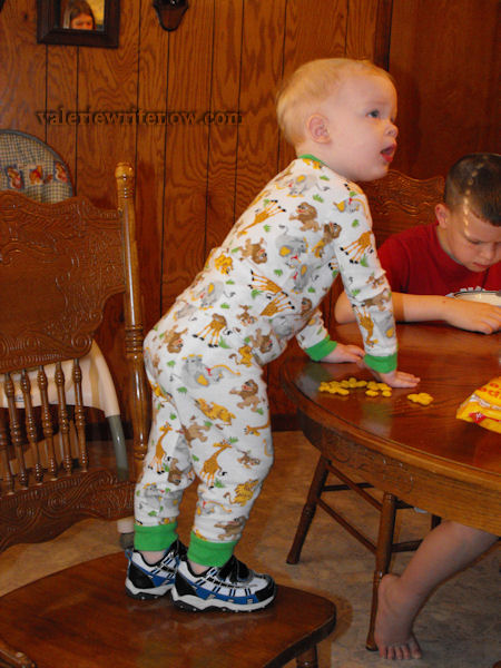 Matthew cracked us up when he wanted his tennis shoes on as soon as he got up! He was still in his jammies! He’s snacking on some dry cereal while his oatmeal was cooking.