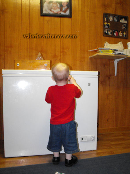 Terry was using tools to repair our couch a few nights ago. Matthew found a screwdriver and thought the freezer needed a tune up. I’m glad he put on the right shoes for the job – his Sunday dress shoes, no socks, with shorts! That’s my boy!