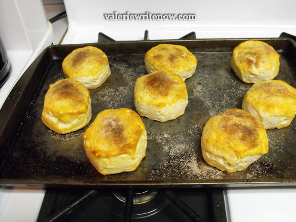 - Preheat oven to 375°. For shortcakes, place biscuits 1-2 inches apart on cookies sheet. Combine sugar and cinnamon in a shaker and sprinkle the mixture evenly over tops of biscuits. Turn biscuits over and sprinkle with remaining mixture.