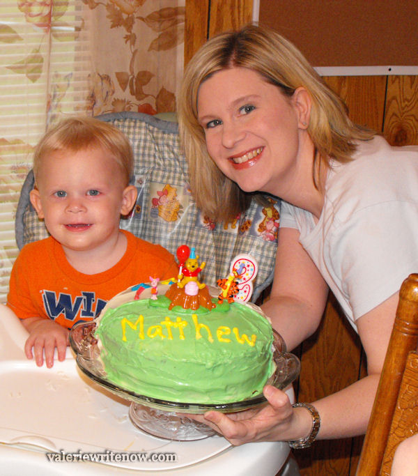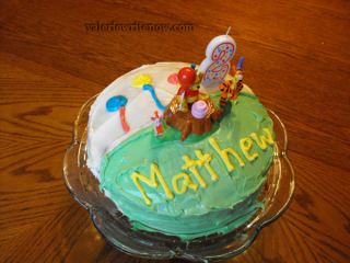 He wasn’t picky about his cake at all! π I bought the Winnie the Pooh decoration at the store, and decorated it myself.Β