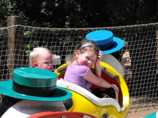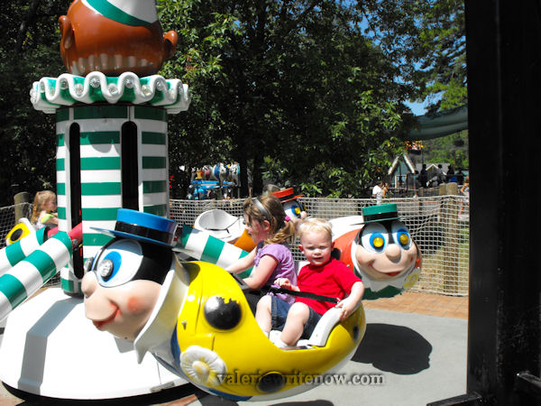 Lauren and Mitch went with their family to ride the “big” rides, so I don’t have any photos of their fun! ๐ Terry and I took the three little ones to do the smaller rides. It was an *exceedingly* hot day. I can’t emphasize that enough – it was 112 degrees…with a much higher heat index. I think we all fried a portion of our brains that day, BUT, we did have fun! ๐ lol!