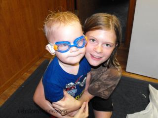Lauren and Matt after playing in the sprinkler. I was glad Matt used eye protection. 😉
