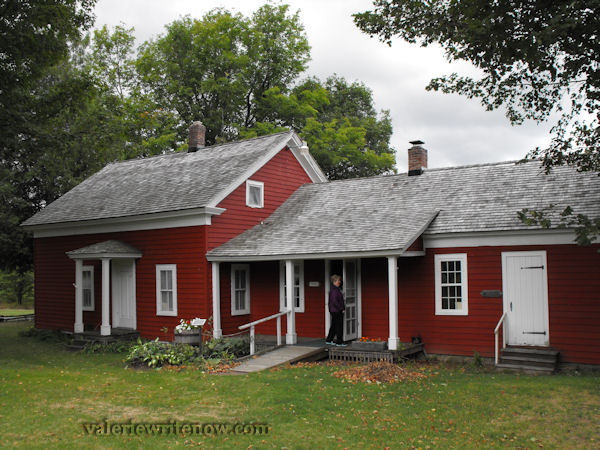 Β The restored home, with our tour guide, Laurie, going inside.The white door on the far right is the cellar.Β