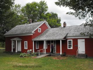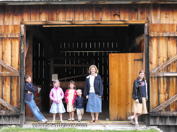 Well, I’m finally finishing up my posts about our vacation last month. (Better late than never, right?) π On our way back from Canada, we stopped by The Farmer Boy home in Malone, New York. We don’t go up to the far North that often, so we tried to do as much as we could while we were there. If you don’t know about this famous home, then you have never met Laura Ingalls Wilder! She’s an amazing person who wrote about her life (in a somewhat fictionalized fashion) in books known as the “Little House” books. The home in New York is the home of her husband, Almanzo Wilder. She writes about his childhood in the book, Farmer Boy. I read every one of these books when I was twelve, but I had forgotten a lot of it! The tour brought back a few memories and piqued my interest – and the kids’ too – to read this book. We finished enjoying it aloud about a week ago. The stories really came alive since we had seen everything she wrote about with our own eyes. We walked down the steep stairs that led from Almanzo’s bedroom to the dining room. We stood in the parlor where he threw a blacking brush at his sister, Eliza Jane. We saw the stalls of Lucy and Starlight. And the stall where he milked Blossom.Β