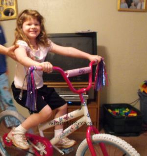 Six years ago, on December 7, we were saying “It’s a girl!” This past December 7, everyone was saying “It’s a bike! Laci got a bike!” I believe she had a wonderful sixth birthday! I took her “window shopping” a few weeks before her birthday. She picked out three possible gifts, knowing she would only be able to get one. On the way home, she said, “Just surprise me, just surprise me…but I really hope I get the bike.” She was very surprised and excited on her birthday morning to get one of her very own!