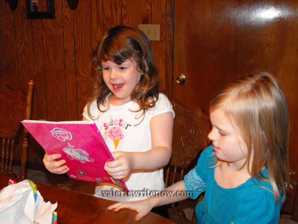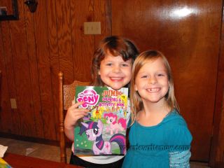 The kids wanted to buy her some gifts. She’s happy with the “My Little Pony” coloring book from Leslie.