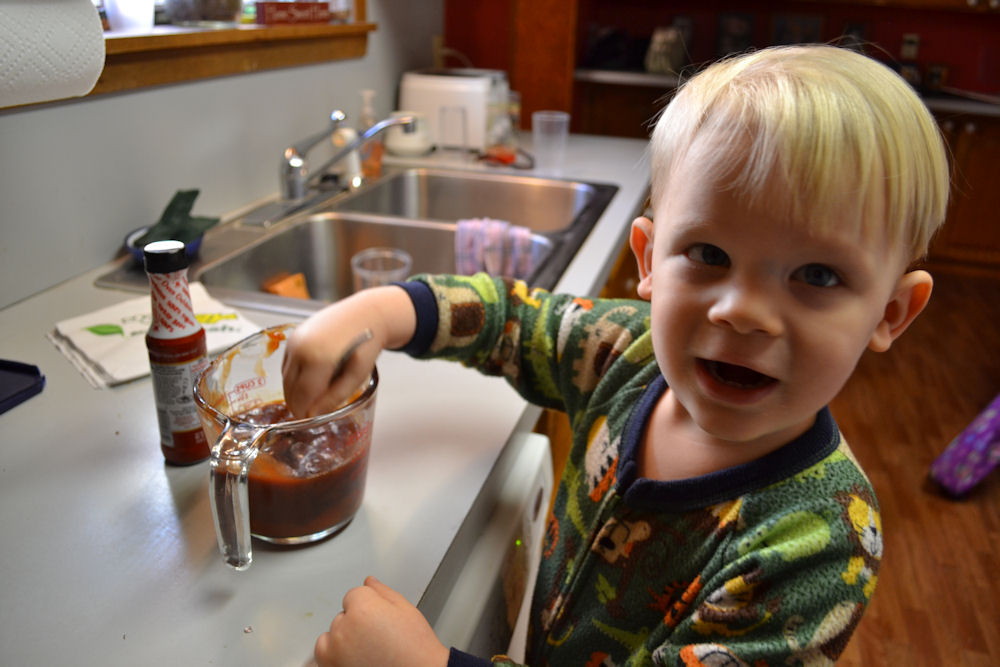 On Sunday, March 3, Matthew wanted to help me out in the kitchen. Usually, I don’t let him in the kitchen when I’m cooking because of safety issues. (Wouldn’t want him to get burned!) But, on this day, I was just putting my BBQ chicken in the crock pot, so I knew it would be safe to have a mini assistant. 🙂