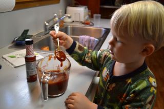 So cute! He will soon be as good a cook as his big brothers and sisters.