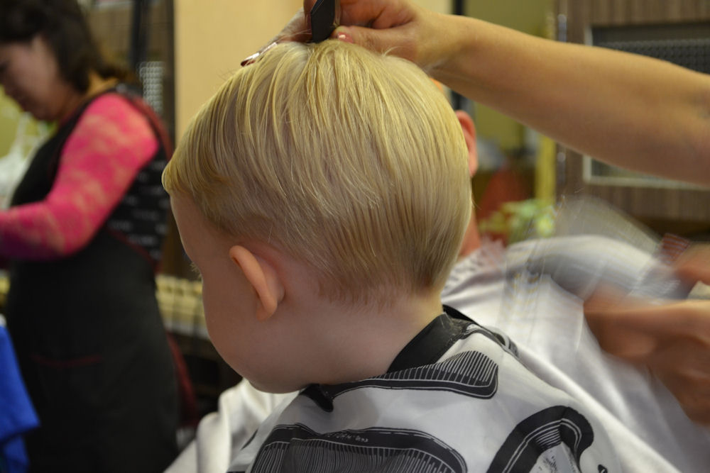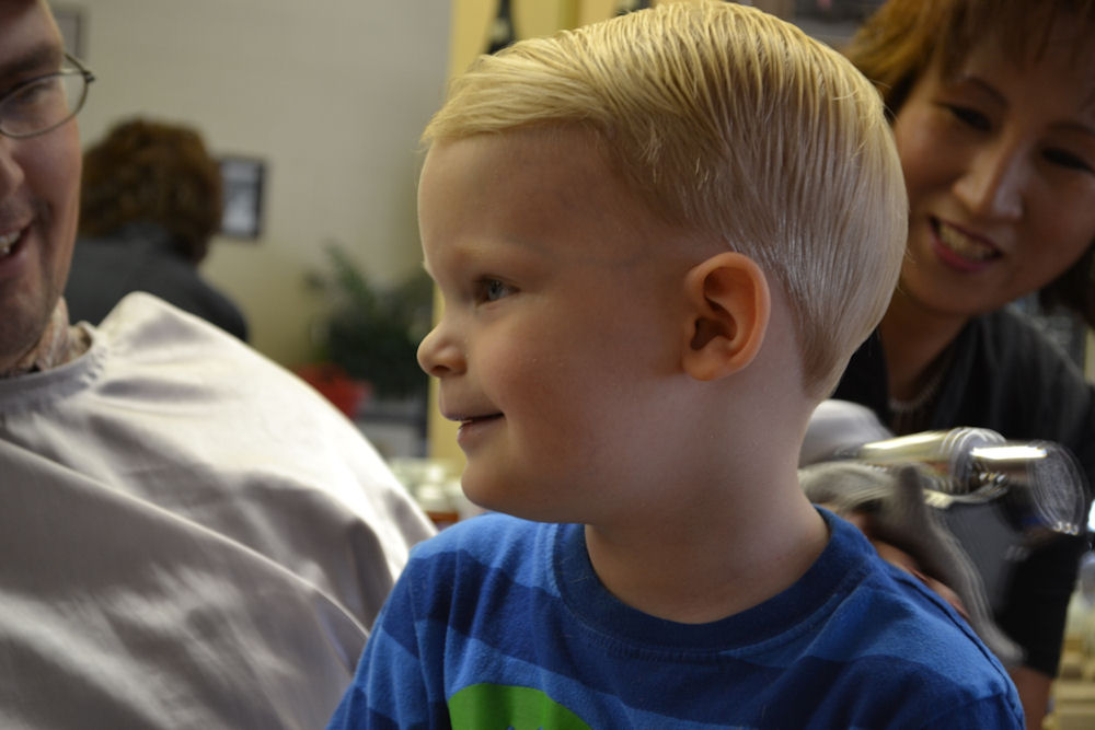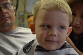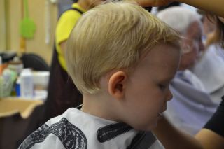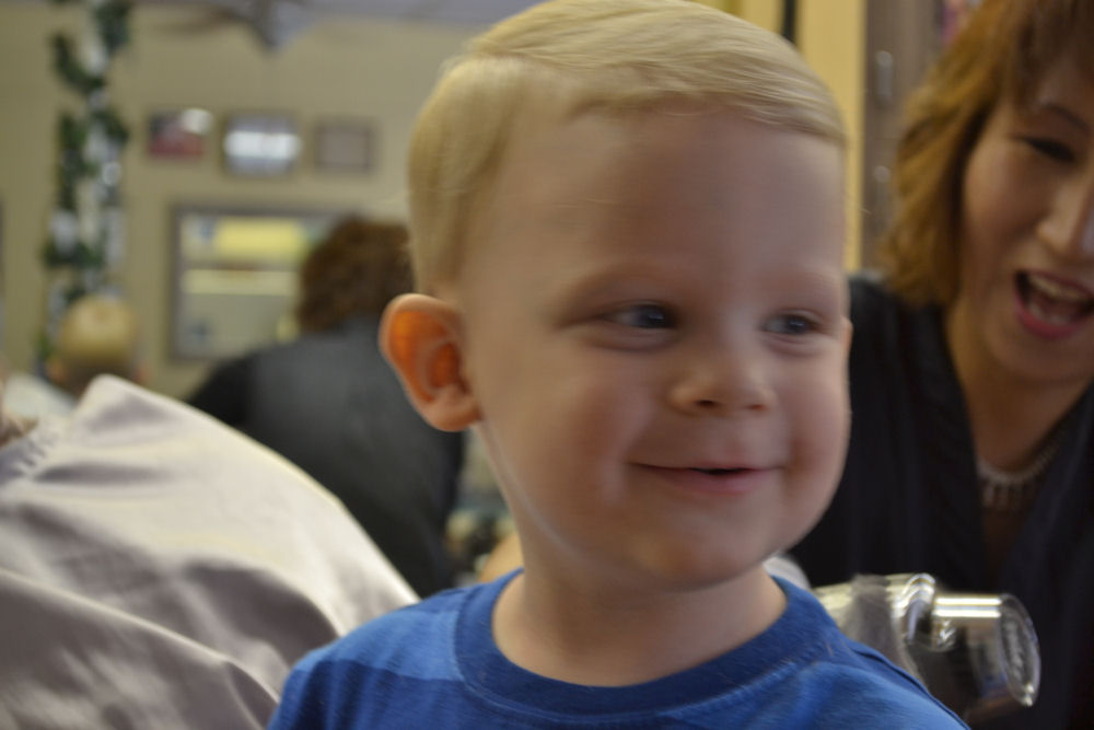 When the haircut was done, she offered to give him a little massage. He seemed to like it. He gave me several cute smiles.