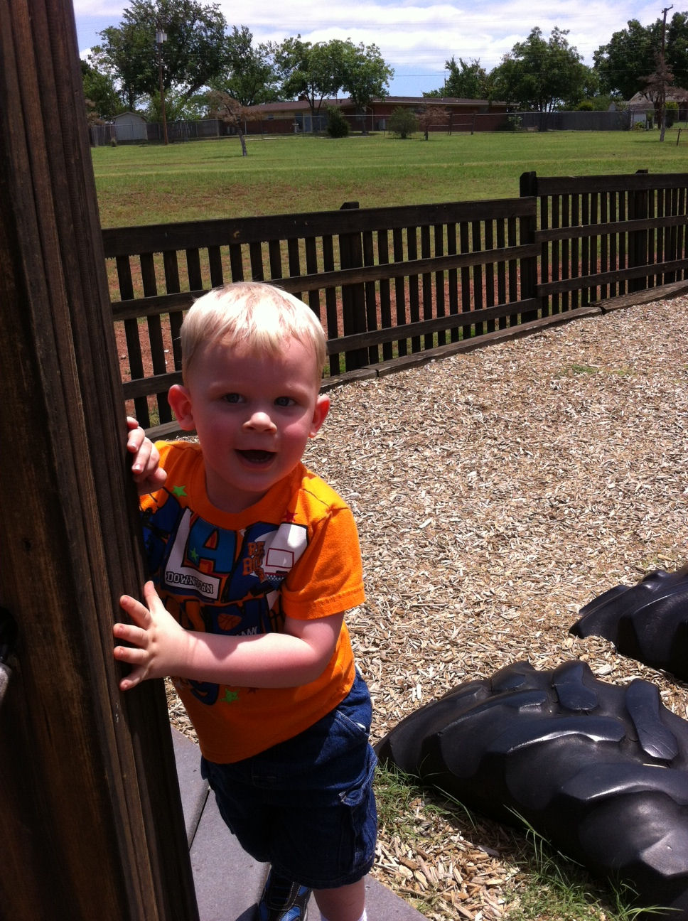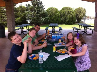 Last Saturday, June 8, our family got crazy – we went on a spontaneous picnic! The weather here was gorgeous – low 80’s, clear skies, low humidity and a slight breeze. When we moved from Hope, my Aunt Kathleen gave us two picnic baskets. I saw the lovely day and then thought of the picnic baskets and decided to go wild! I packed up a lunch and we went to the park! I’m pretty sure that the weather here gets just as hot as it did in Hope. At least I’m well prepared!