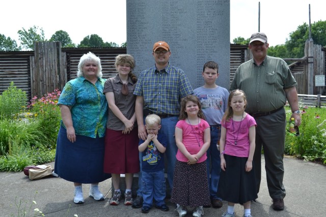 On our way home, we met up with my in-laws to visit Fort Boonesborough, Kentucky. This state park is a replica of Daniel Boone’s fort which he built in the late 18th century. The Bashams had promised the kids that they would take them here about seven years ago, and one thing or another always seemed to prevente the trip. Everyone was excited when it finally happened! 🙂