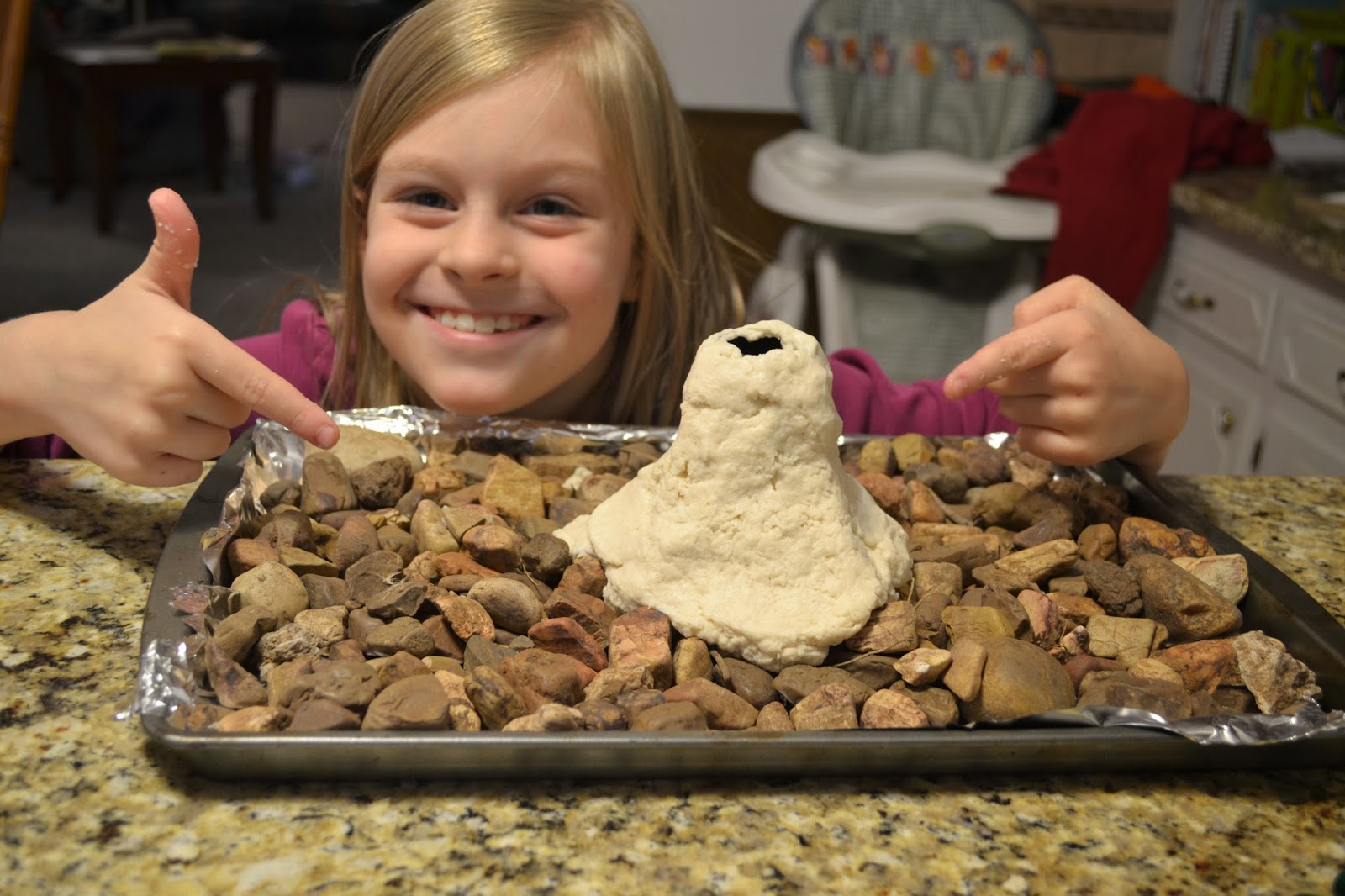 Next, we mixed up the dough recipe in the book and molded it around an empty vitamin bottle. It looked like this: