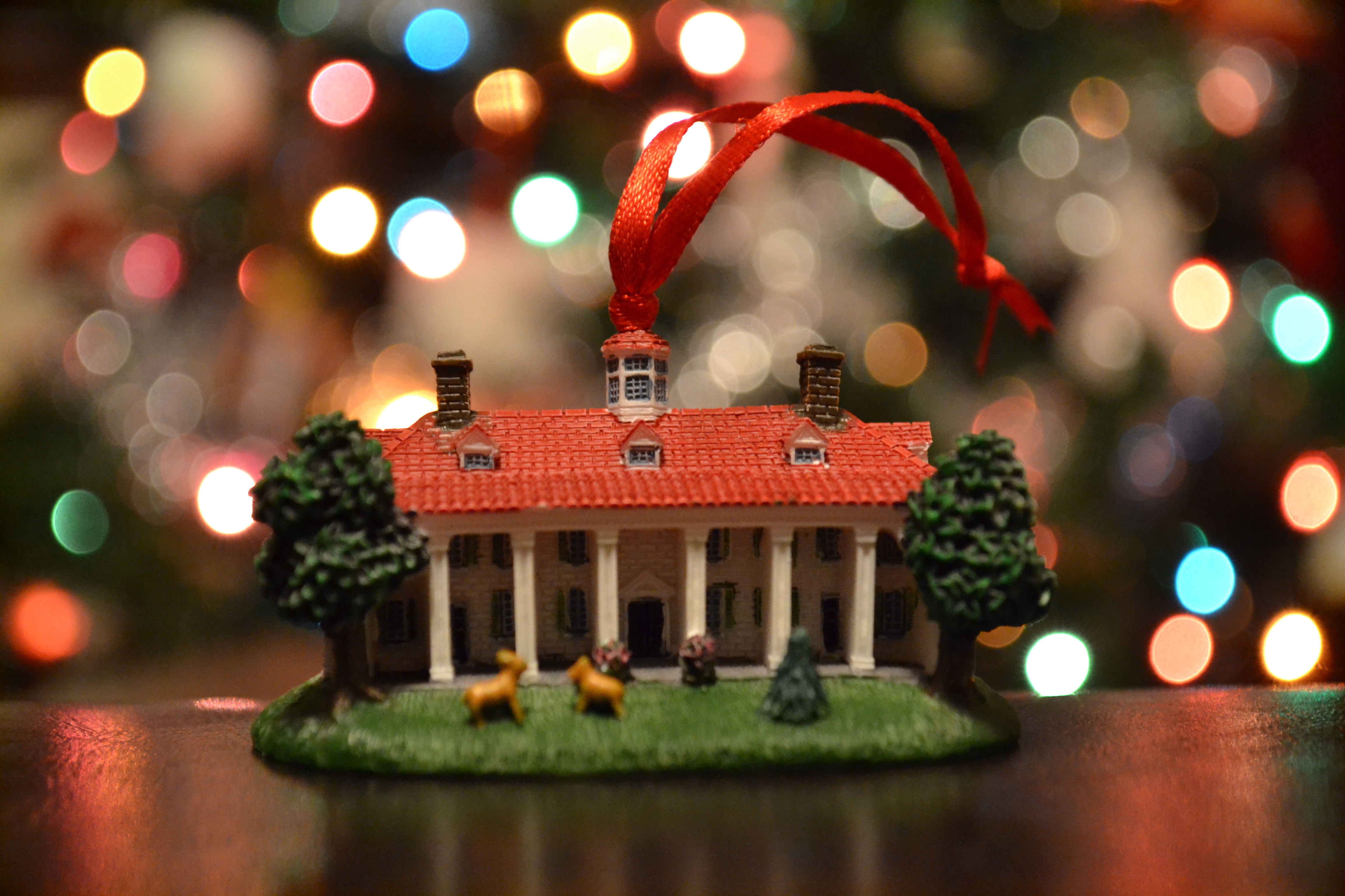 This is an ornament I bought at Mount Vernon last summer. We had a great time there, and this was a great souvenir. I love the blurry lights in the background.