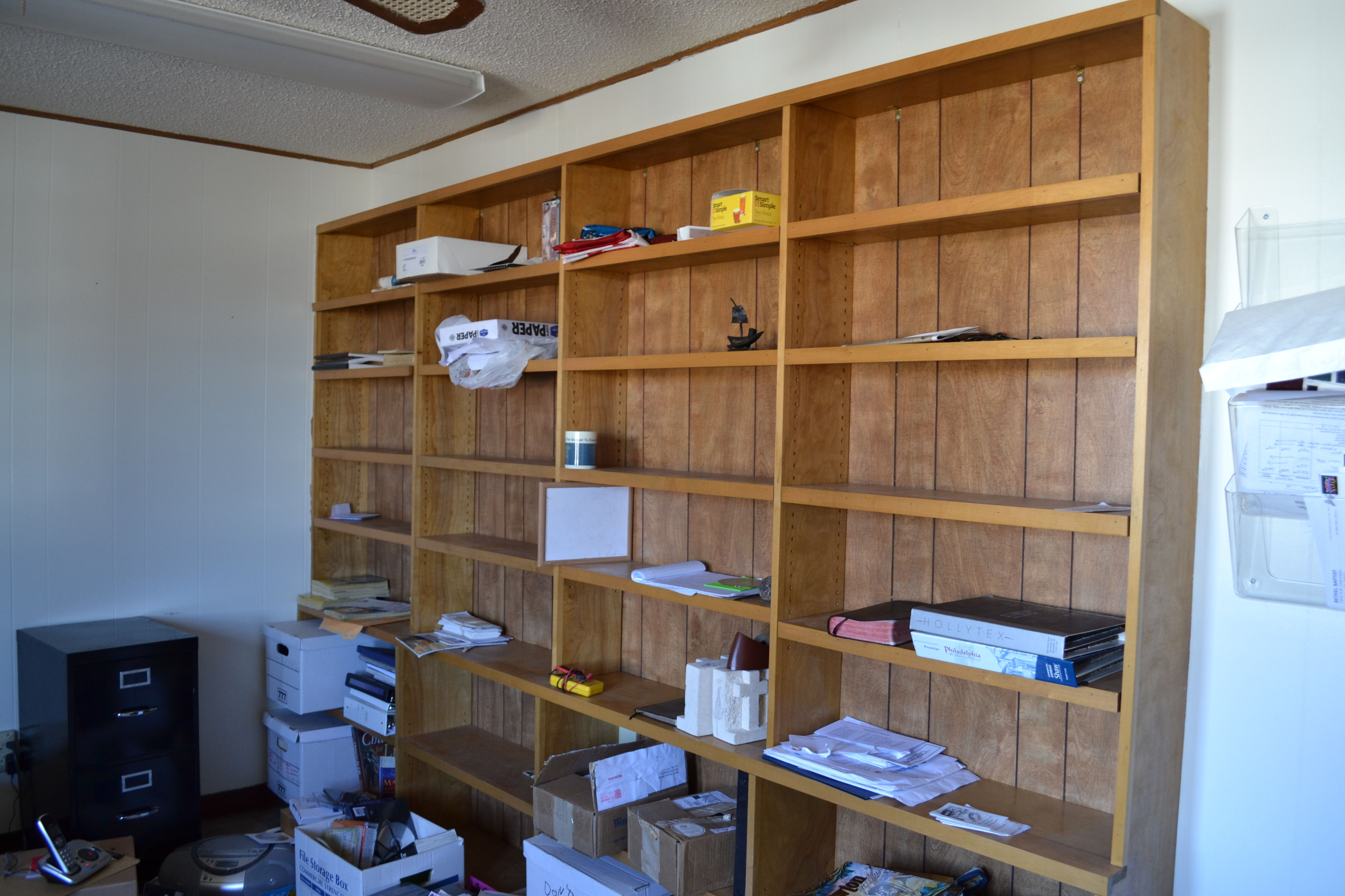 It looks like a bomb went off after all of the moving! If, in the future, he gets an associate pastor, his office will be here. I promise we’ll clean it up first. 😉